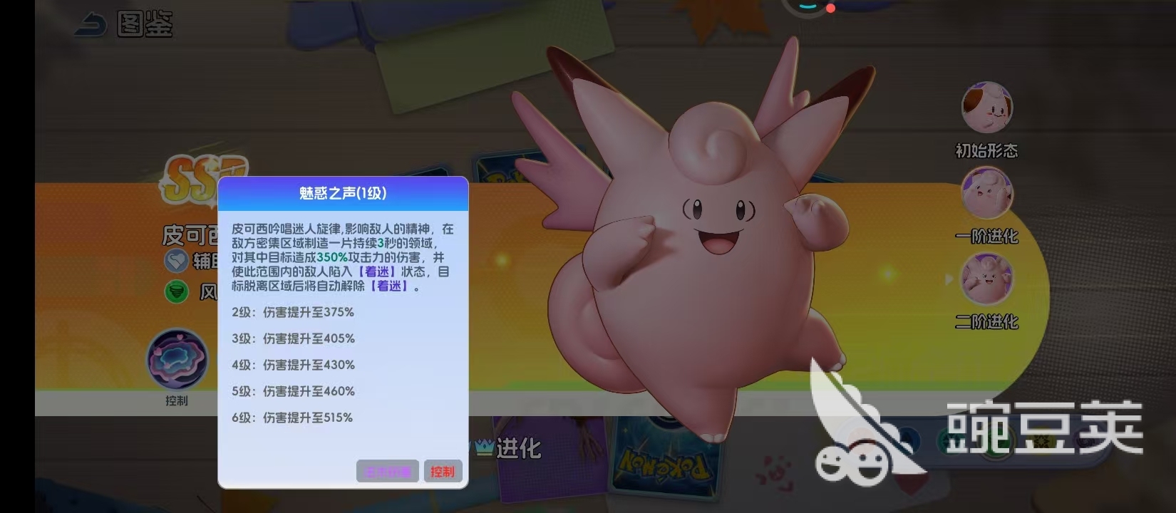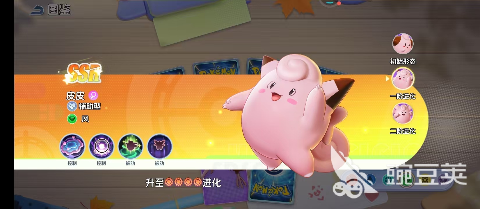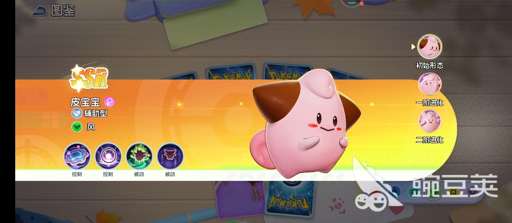 皮宝宝就是初始的形态,拥有着圆滚滚的粉色身躯,在队伍中也是一个很有亲和力的存在。作为风属性的辅助型宝可梦,技能的设计,早就已经拥有控制能力和辅助能力。两个主动控制技能,还有被动技能的组合,就能让他在一开始就给队友带来关键的支援技能。虽然此时他还有一些稚嫩,但是未来就会成为团队中的核心。
