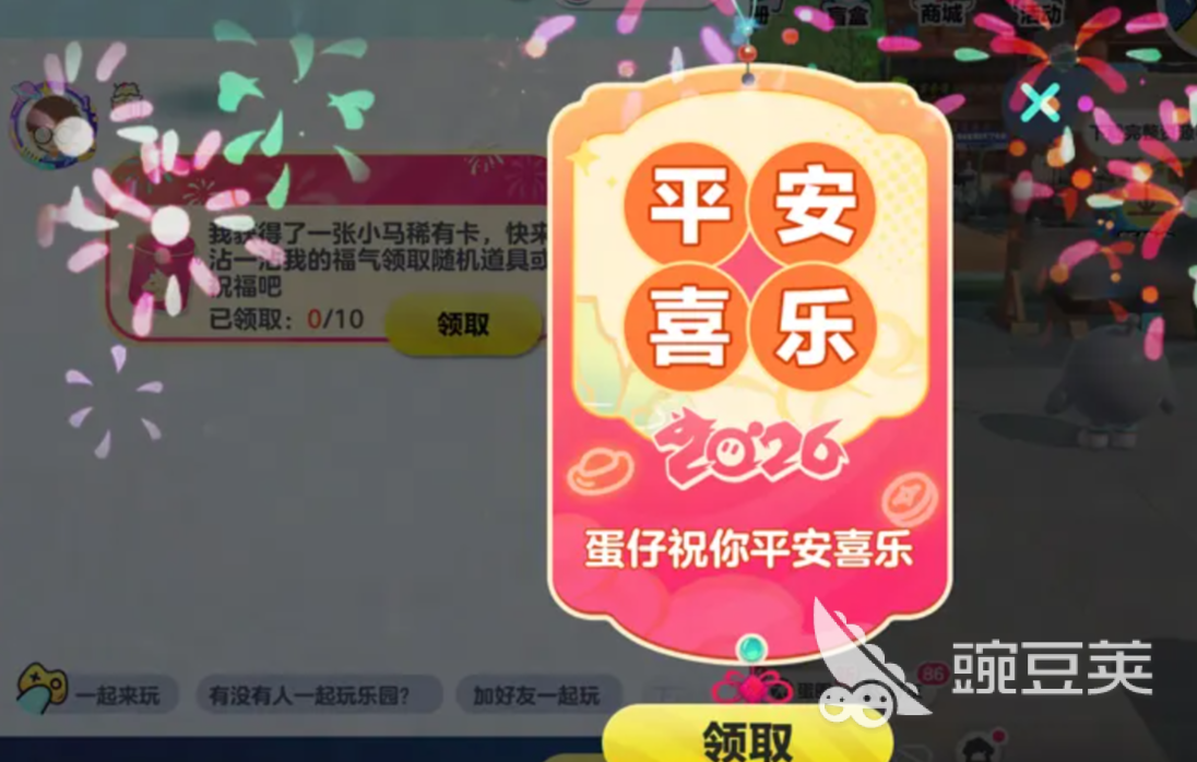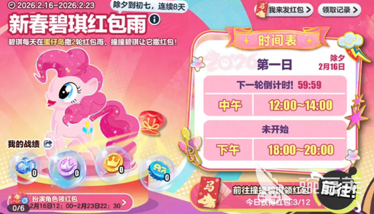 首次协助其他蛋仔开启蛋选卡,可获得“欢乐派对”表情动作。每成功收集一张稀有卡,即可向好友或公共频道发送小马宝莉主题服气红包,单次红包最高可掉落66彩虹币。2月16日至2月23日期间,每日12:00–14:00及18:00–20:00,角色碧琪将在蛋仔岛限时现身,定时派发彩虹币红包,单个红包最高金额为66彩虹币。