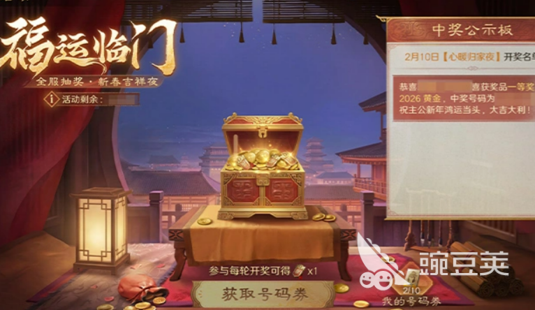 福运临门算是个抽奖类型的玩法了,时间是2月10号到3月3号。抽奖卷可以从百戏游园和元夕灯谜这两个地方获得,只要手里有卷,就算参与了这个玩法。开奖时间定在2月17号、21号、24号,还有3月3号这几天,中奖了最多能拿到2026个黄金,运气好的话,收获不小。