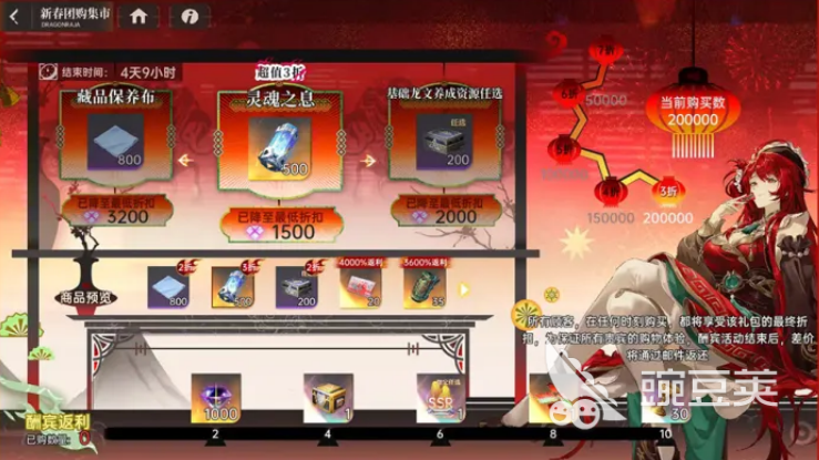 团购这边分两期,第一期是2月11日到18日,第二期是2月18日到2月24日。团购礼包的折扣会,随着购买人数增加而变大,也就是买的人越多越便宜。有一个点值得注意,就算你提前买了,到活动结束的时候,如果折扣变低了,差价会返还给你,不用担心买亏了,可以在合适的时候入手。