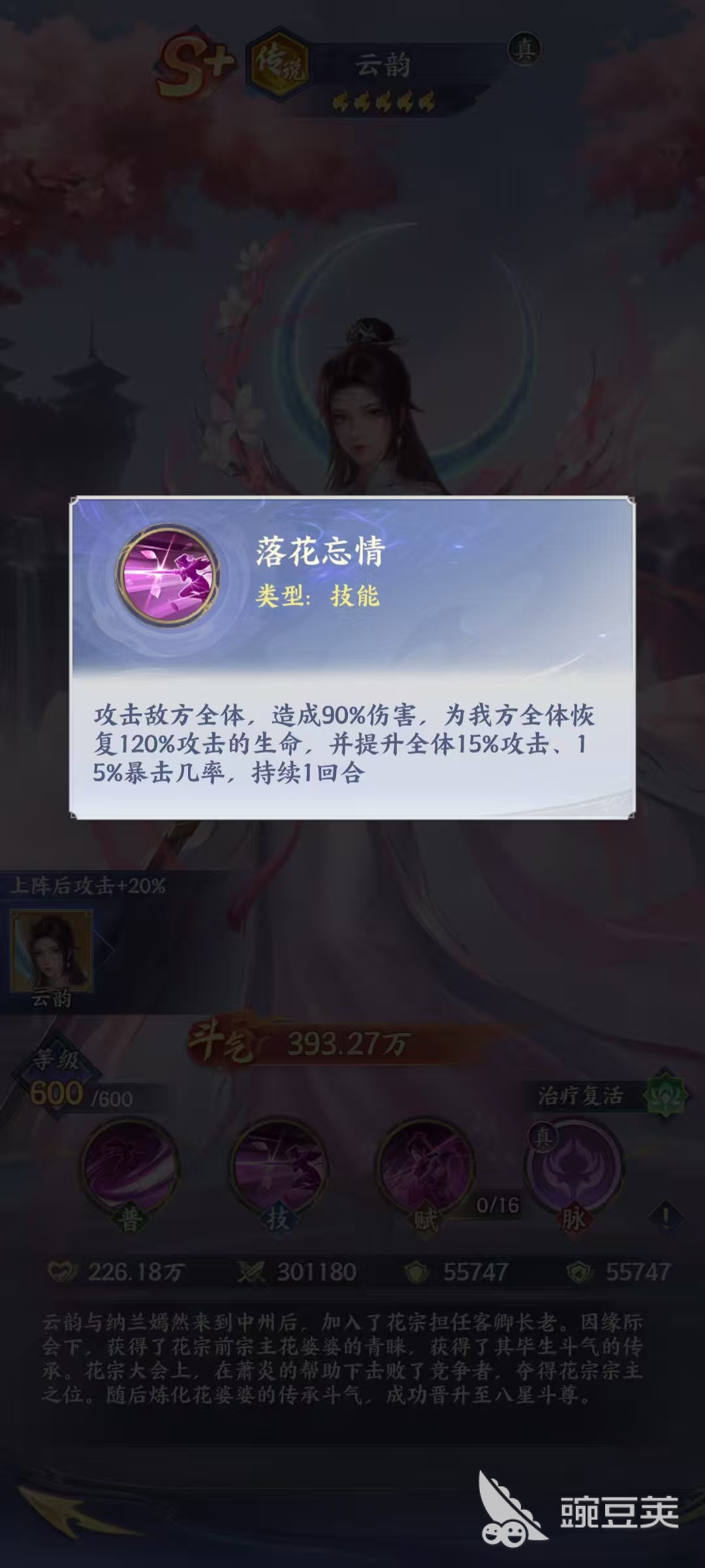 云韵在斗破苍穹手游当中作为传说级别的角色,也是花宗的宗主,在整个团队当中,它能够起到续航跟控制节奏的作用。玩家在合理的运用云韵的时候,也需要知道,它具备治疗、复活等等特点。虽然很多玩家觉得它只是回血,但是深入了解以后才发现它的治疗量跟生存能力都比较强悍。