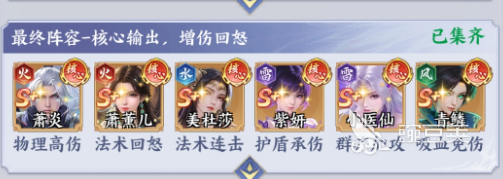 如果玩家已经凑齐所有的核心角色,那就可以选择这一套终极追击队。这套阵容将输出回怒,承伤以及续航全部都结合在一起,是目前版本中相对比较有实力的。萧薰儿就是火系法术的回怒核心,技能可以迅速的给队友回复怒气,让核心技能输出更加的频繁,早就已经成为团队中的核心。美杜莎就是火系法术的连击核心,多次攻击,再配合肖薰药的回怒效果之后,就能形成完美循环。紫炎护盾承伤坦克,护盾就可以吸收大量的伤害,还可以给队友提供关键的减伤效果,早已成为团队中的盾牌。在这一个阵容中,核心的逻辑就是以输出循环,还有生存保障作为核心。萧薰儿的回怒就能让美杜莎的输出技能更快的触发,小医仙就可以保障团队的生存。青鳞吸血秒伤就能让输出更加的持久,无论是PVE又或者是PVP这套阵容都能轻松的碾压对手。