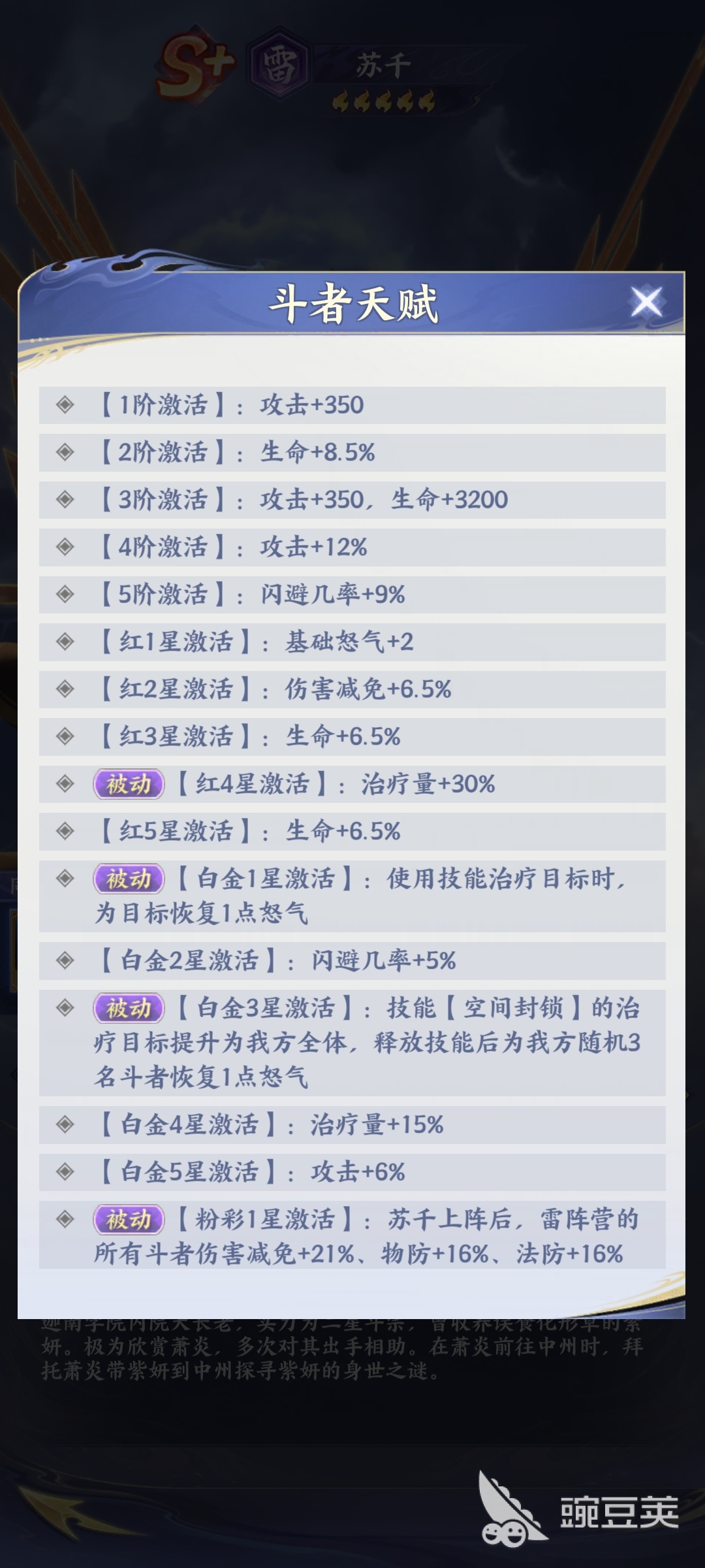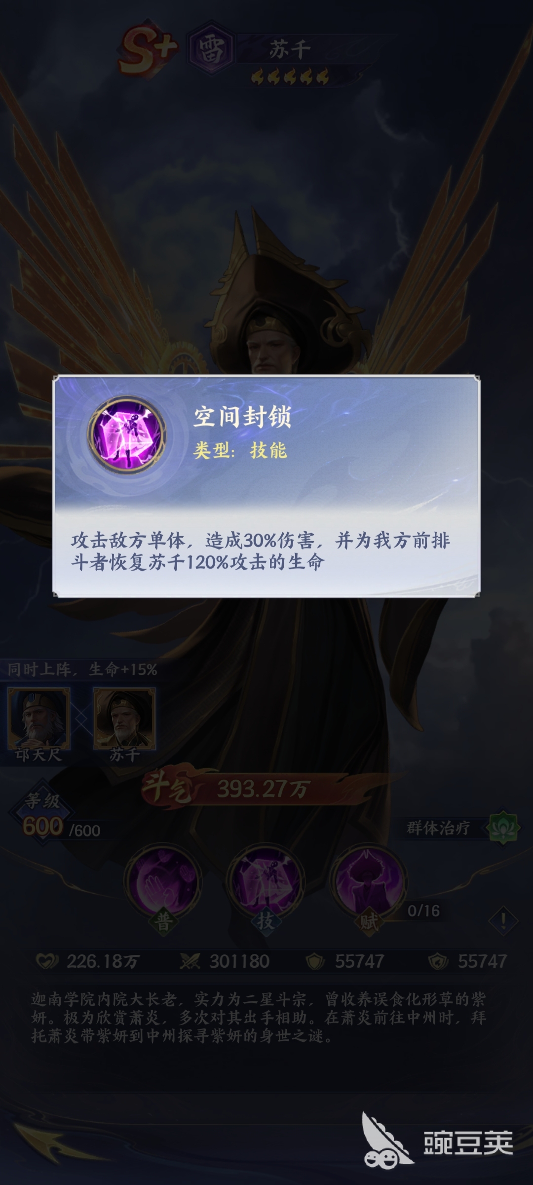 斗破苍穹苏千技能一览,就简单的分享到这里。苏千作为迦南学院的大长老,他其实实力是比较强大的,它也具备守护的能力。所以说,玩家在体验游戏的时候,利用书签,不管是在PVE副本还是在PVP竞技当中,他都具备比较强大的治疗跟辅助能力。