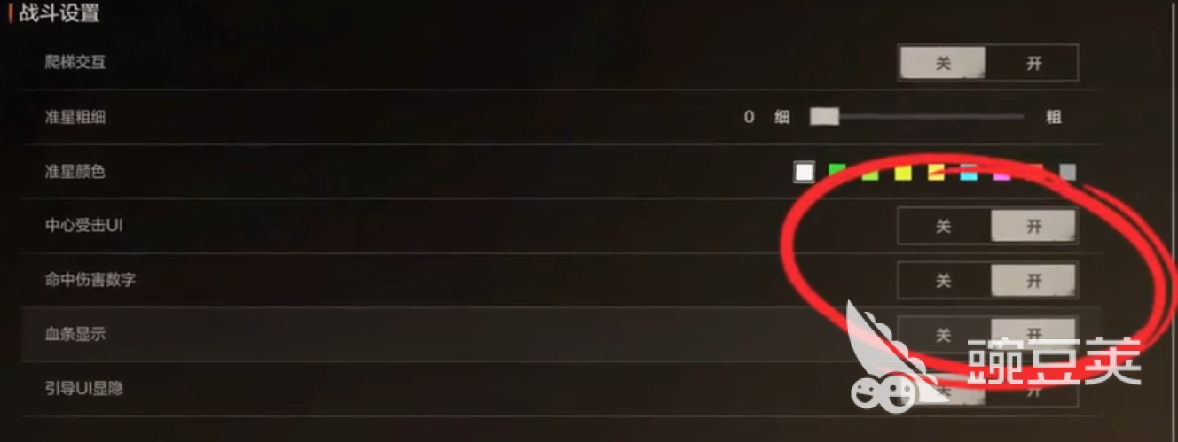 其次是我们的UI设置,我们点开游戏中的“UI”选项,能清楚的看见有好几个设置。我们把爬梯交互给关掉,要不然一靠近梯子就会自动触发攀爬,有时候会让我们错失良机,悔恨不已!相信很多小伙伴们也被许多游戏中的“自动攀爬”功能坑过吧!准星粗细和准星颜色根据自己的喜好设置来就可以了,小编这里推荐的话是准星颜色尽量选择高对比度的,比如红色粉色橙色之类的,与我们的自然环境做出区分就可以,千万别选绿色。“中心受击UI”和“命中伤害数字”,以及“血条显示”我们都打开,前两者能帮助我们更方便的判断是否击中敌人,对敌人造成了多少伤害以及对面穿的是什么套装,后者能帮助我们根据自己的血条来判断是否该突进还是撤退,毕竟我们在战斗的过程中,不可能一直盯着最下面的血条看。
