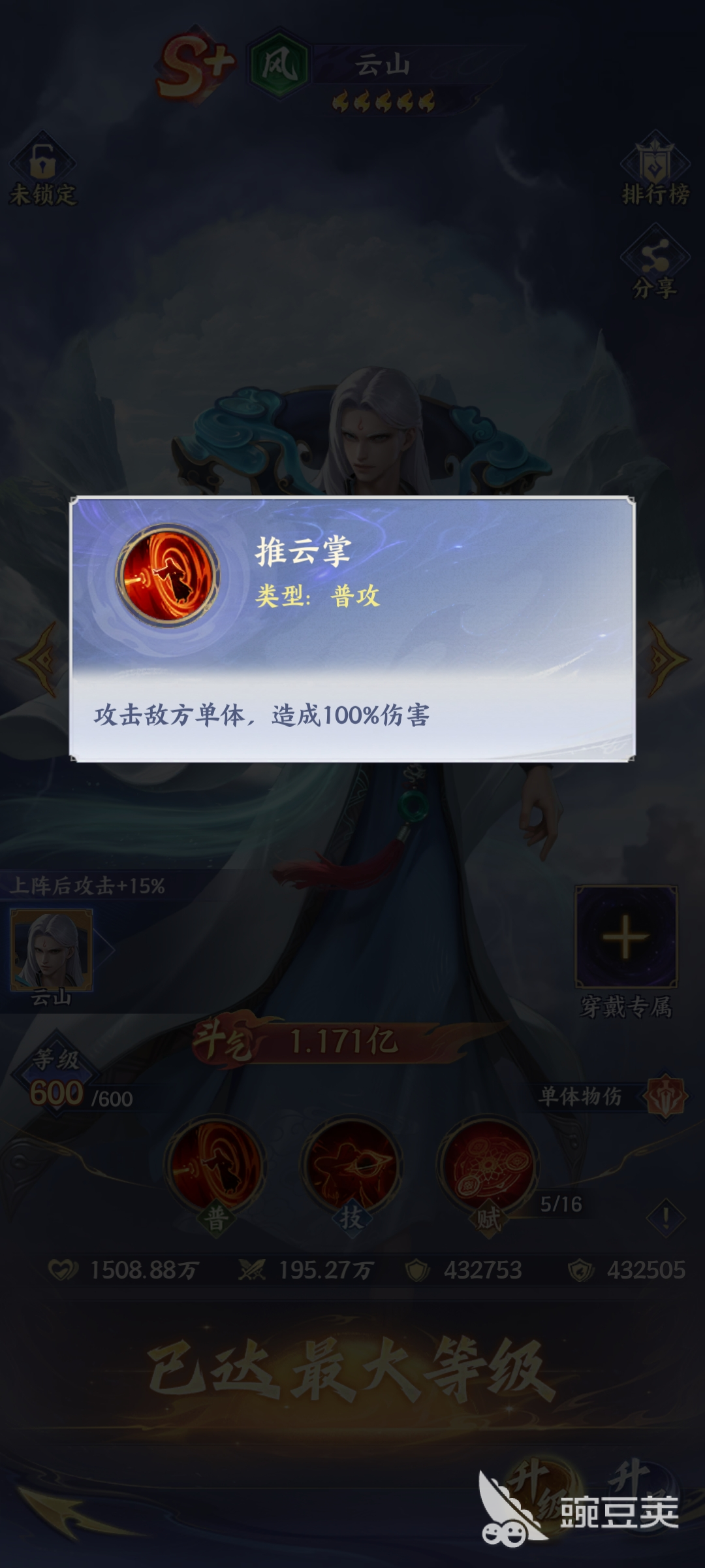 云山在手游中就是一个风系斗者,还是比较受到大家关注的。拥有较强的单体物理性伤害能力,它的普通攻击推云掌。看上去好像比较平淡,可是却能够精准的打击敌方单体,会直接造成100%伤害,这样的伤害足以让敌人甘拜下风。因此在这一个阶段,那自然就可能会有更大的伤害。所以在释放技能的一瞬间,那对于敌人来说,想要躲避也会有较大的难度。