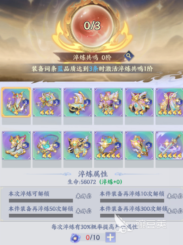 淬炼则是深度养成的关键环节,可以完全释放装备的潜力,每一次淬炼就有30%的概率可以提升基础属性。当装备词条蓝品质达到三条时,就可以激活淬炼共鸣,能够提升战斗力。在淬炼的过程中,可以通过灵萃功能重置词条属性,直到刷出比较适合自己的职业组合。对于输出职业,应该先选择暴击词条或者是攻击词条,坦克职业,这主要是注重于生命以及防御。需要注意的是淬炼次数越多,那解锁的属性槽也就越多,当一件装备淬炼300次之后,就可以把所有的隐藏属性全部的解锁成为毕业装备。