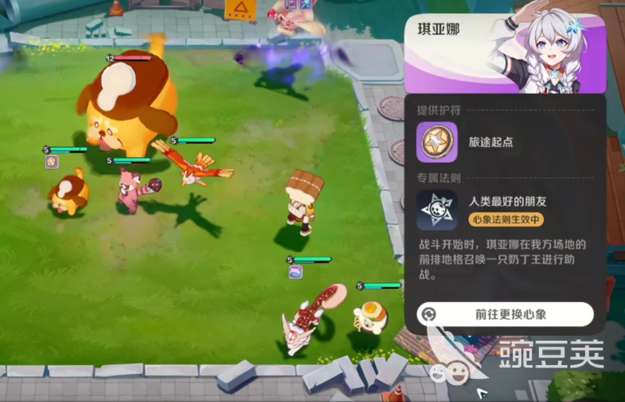 琪亚娜的整体游玩思路其实非常简单,主要围绕着前期打竞技吃连胜为主,琪亚娜的专属护符一开始就会生效,能为我们的前排或者C位提供不俗的生存能力,这在前期高压环境中可以说是非常管用,尤其是对于我们的前排而言,有时候可能在面对小型精英怪或者运气不好的时候经常容易暴毙,有了琪亚娜的专属护符“旅途起点”可以让我们丝滑的过渡到中后期发力,并且其专属法则“人类最好的朋友”也会为我们召唤一只精灵协助战斗,这在某些前期高压的环境中至关重要,有时候我们抽不到前排或者C位,总是会倍感头疼,这时候来上一只“奶丁王”来协助我们,减缓压力,可以说是非常有用了,而且奶丁王本身输出能力也不俗,如果小伙伴们愿意的话,也可以将奶丁王作为主要C位,在前期角色不多的时候可以说是非常管用了。