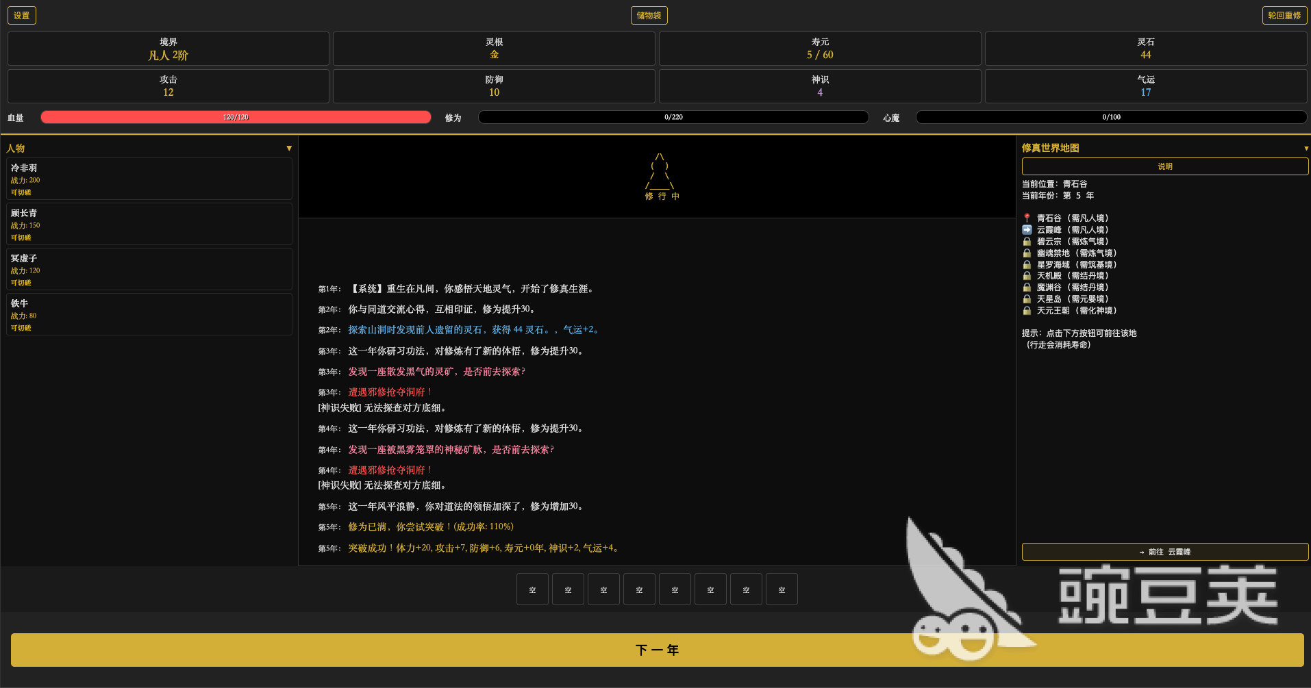 游戏核心玩法围绕“灵根系统”展开,角色初始灵根由系统随机生成,涵盖单灵根、五灵根及稀有变异灵根三大类型,不同灵根对应差异化的属性成长曲线与突破门槛,极大提升了角色养成策略性与长期可玩性。玩家无法自主选择初始灵根,必须依据随机结果制定专属发展路线,这也构成了本作区别于同类产品的硬核特色之一。