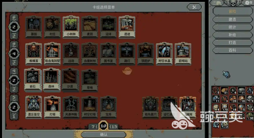 卡组方面也是有讲究的,多余的地形牌不要带,带精简的卡组,这样抽到的地图格子基本上,都是森林和灌木丛,这两种地形对盗贼来说非常重要,前期可以放一些石头格子,到了中期之后主要就是往森林上铺,石头的价值到后期会明显下降。