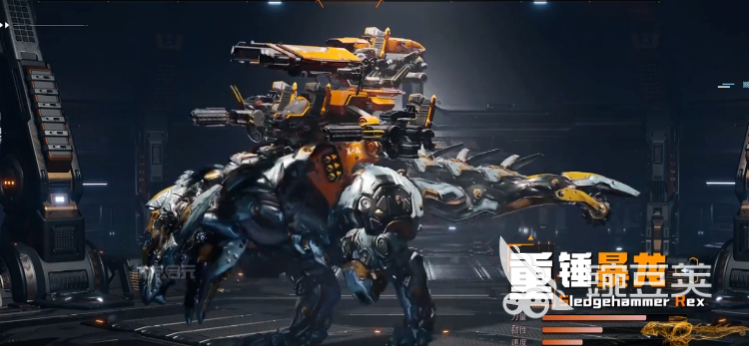第二个为大家推荐的就是重锤暴龙,在目前近战类型的机械兽当中,它具有的压制力也是非常强的,而且在整体的移动效果当中,身高和体型也是目前最大的一个机械兽,达到了超8m的体型可以带来的冲击力也是非常高的,机身上面他用的是双液压式的手臂搭配了一个震荡式的尾锤,所以在身体部件上面看起来也是充满了力量感,在核心的效果上面,它提供的爆发能力也是非常强的,搭配的震荡式尾锤在游戏当中也是可以快速的扩大自身攻击的范围,在冲击能力的释放效果上面足够打出更高的输出,后期在常规的基础攻击能力上面,其实包括的一些动作有冲撞以及甩尾的两个基础能力,特别是在其中利用这样的冲撞动作,其实可以带来的力度也是非常高的,可以穿透对面身上的新型护盾,所以在遇到一些有防御效果的机械兽士,大家就可以上重锤暴龙来进行攻击,而后续进行甩尾的话,也可以对大范围的目标都造成攻击能力,同时击中的敌人身上还会有3秒的减速影响,降低敌方的机动能力还是非常有用的,他的特殊技能叫做区域爆震,这个技能只是在半径12m之内的定点引爆之后,还可以带来足够强势的冲击波,对于一些群里的人来说也是有非常强势的范围攻击。