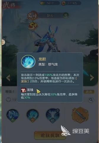 赵云的实战能力真的是无话可说,怒气技能龙胆,一旦在打到敌方之后,就会造成195%的攻击力伤害,并且还会额外增加10%的伤害率。打完之后还会追加普通攻击,不管是单点压制还是持续性的输出,都是比较有优势性的。在游戏里面还会定向送进阶素材,培养门槛就会直接拉低。前中期靠他就能有机会迅速的站稳脚跟,在同阶段的玩家中可以迅速的打败其他的对手。