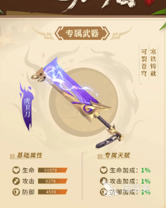 专属的武器就是武将的核心战斗力,每一个名将全部都会有绑定的专属武器。技能加成还有属性都是独特的,例如张飞还有关羽这一类的核心武将,在第1次获取时就会自带专属的武器。周瑜的专属武器就需要在赤壁之战的主题卡池去抽取,没有办法锻造合成。一开始优先给主力去配齐专属,战斗力就能更上一个台阶,例如典韦的虎卫刀。从史诗到无双阶级,可以迅速的提升怒气技能伤害,还能叠加攻击。