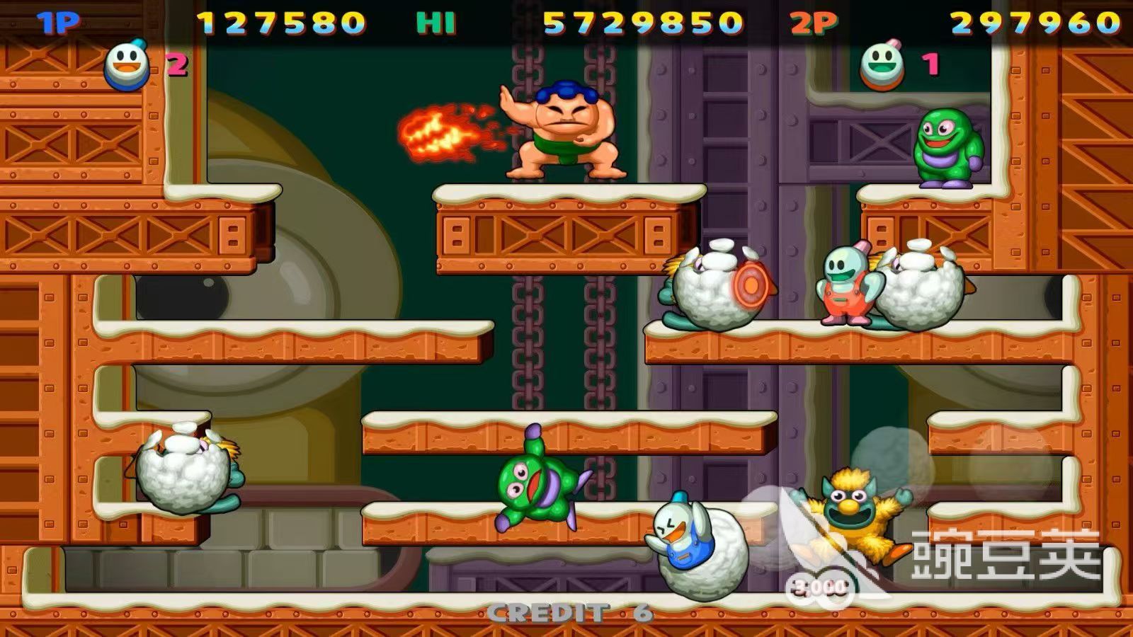 本作由TOHO于1987年发行,是FC/NES平台标志性动作闯关作品。玩家需在限定时间内完成跳跃、投掷、推动等组合操作,利用地形与雪球物理特性应对不同怪物类型。角色采用三头身Q版建模,配色清新活泼,关卡设计紧凑合理,难度曲线平滑,兼具可玩性与耐玩性,被广泛视为早期双人协作玩法的奠基之作。