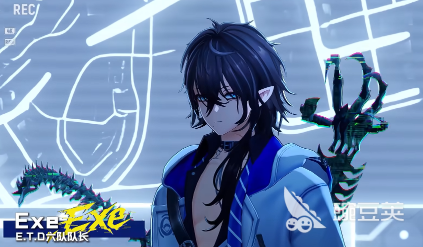 接下来是EXE,这个角色其实是有一些赛博朋克风格的元素在,在他出现的场景当中科技感直接拉满,和他的角色定位PV里展示的画面也比较符合,他的核心能力是能操控具象化的龙形数据体,还能短暂进入折叠空间执行异象清除任务,这种能力听起来比较特别,而且他的信息卡全是问号字段,旁边还有明显的黑客徽标,再结合他的名字,不难看出他拥有系统类似的干预权限,估计后续版本当中也会强化他程序执行者的身份,可玩性是非常高的。
