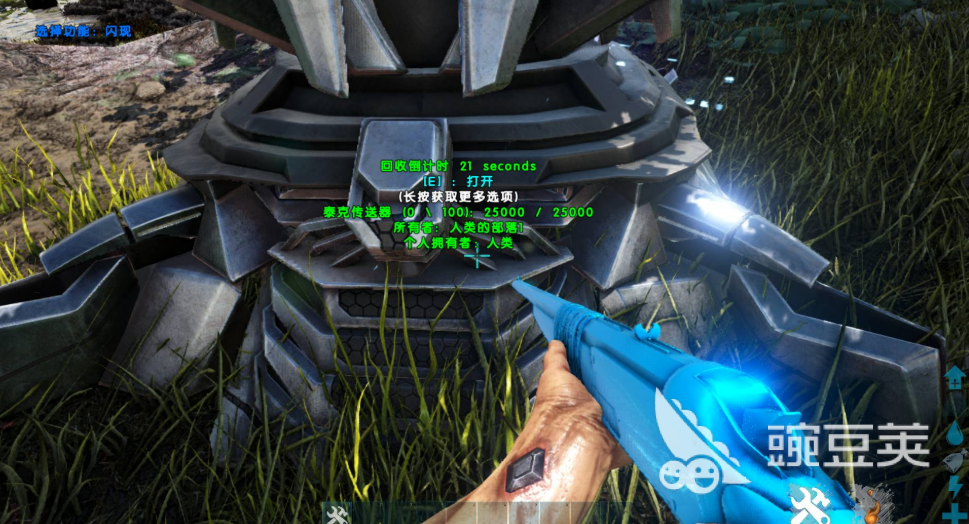 传送器那边的操作也要说一下,点开传送器之后里面有三个选项,分别是方舟数据、生物和贡品。方舟数据那个选项是用来传物品的,把东西拖进去就开始传,不同的物品等待时间不一样,一些要等一会儿。生物那个选项是专门传恐龙用的,贡品则是跨服务器传人物的时候才用到。