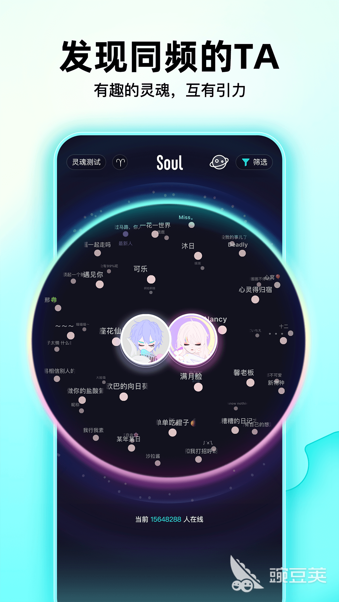 以灵魂匹配、弱化颜值的社交模式出名的社交平台,用户注册后需要进行性格测试,系统会根据回答生成一个虚拟身份,之后给用户分配对应星球,再结合兴趣标签完成匹配,平台支持语音群聊派对等社交功能,也搭载了狼人杀这类轻互动玩法,并且没有加入现实通讯录关联等功能。