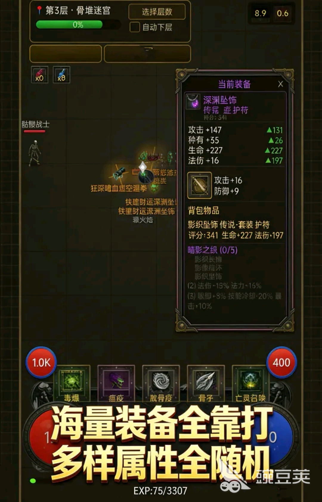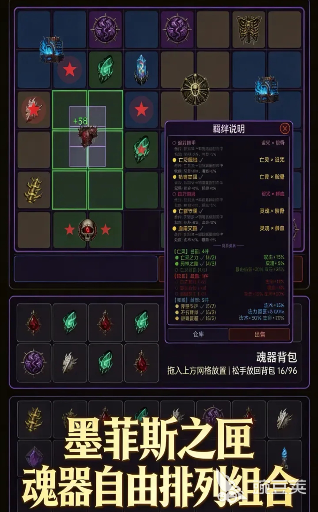 本作采用轻操作重策略的设计逻辑:战斗全程自动进行,资源收益支持离线累计;装备系统强调随机性与成长深度,每件装备均含独立生成的前后缀词条、技能刻印槽位及巅峰加点联动机制;BD构建依托技能树与词缀协同,例如“墨菲斯之匣”功能允许玩家自主编排魂器激活顺序,显著提升流派差异化表现力。