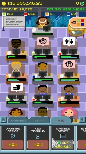 《创业公司模拟》游戏以像素结合着精彩绝妙的商业玩法元素,让玩家体验到一段完整的成为商业大亨的心路历程,设定模拟了各种挑战性独家的项目任务,为了驱动鼓舞提升公司的收益,还需玩家们展现出敏锐的头脑,去勇于钻研开发,设计的员工都自带了可进行提升的能力属性值,还高度的复现了与材料商之间的供需、商业竞争等因素。