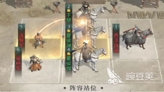 在格子当中,玩家可以往前排放西凉铁骑中间,左右两边放夏侯惇和于禁,中间放夏侯渊,最后一排可以放两个连弓兵,因这样整个阵容就有了一定的保障,在具体的战位上是坚不可摧的,整体的战斗输出力大幅度增加,防御能力也能有所提升。