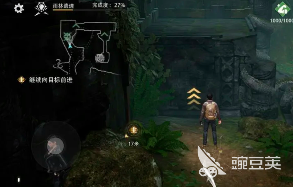 该任务起始于雨林遗迹章节,传送至林地区域后,玩家将面对多层环境交互结构:石桥错落、水面浮木隐现、水流路径复杂。首阶段需操控角色穿越浅河,连续跃过两处山岩,在视觉遮蔽的水面上精准定位首个宝箱。此环节强调空间判断力,吴邪角色自带罗盘辅助功能,可显著缩短机关识别耗时,建议优先选用。