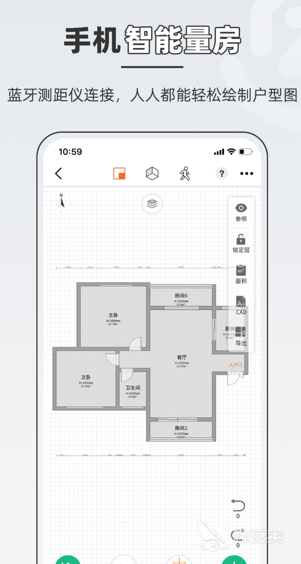 量房这件事,一个人扛着卷尺转半天,数据还容易出错。蓝牙连上测距仪,50米范围内的尺寸精度能控制在1.5毫米以内,复杂户型10分钟左右就能完成数字化还原,户型图自动生成,转成3D模型也是一键的事。设计层面软硬装分层处理,模型库里的构件数量相当可观,拖拽布置就能完成空间摆放,漫游编辑的操作方式也比较直观。