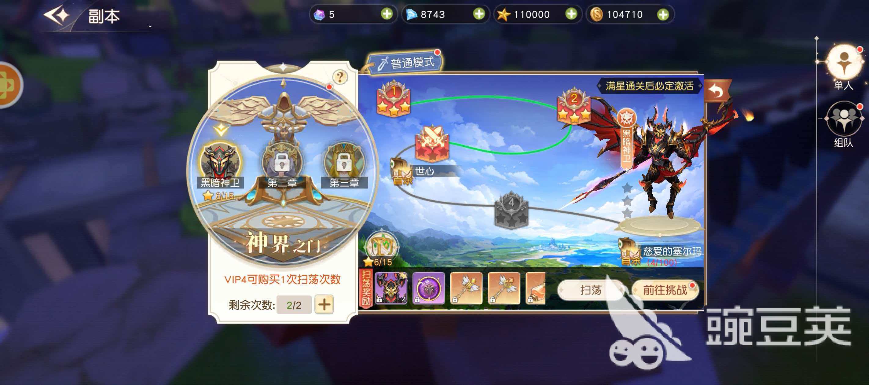 玩家们在去打这些副本的时候,首先就需要副本解锁,然后自己的战斗力也必须足够才行,小编这里那装备谜境举个例子,装备谜境是一个组队副本,该副本需要队伍人数在2人或者2人以上才能进入,进入副本以后还能激活额外的经验加成,副本通关的星级和掉落装备的品质有着直接的联系,通关的星级越高,副本掉落的装备星级也就越高,不过,装备副本每天只有2次挑战的机会,建议玩家最好在战斗力最高的时期去进行挑战,比如说刚把buff给叠加起来,或者是给装备完成了附魔、符文以后,这样能够大大的提升通关的星级哦,若玩家是vip会员的话,那还能够额外的在购买1次挑战的机会,大家要将这1次机会给利用起来哦。