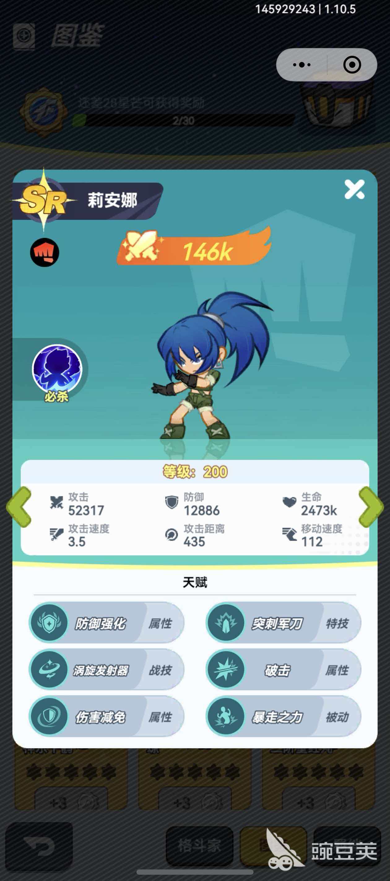 sr品质的莉安娜是一个单体爆发能力最强的输出型角色,针对防御能力比较弱的敌人更是有着能够直接秒杀的效率,她的必杀技V字斩可以对防御最低的敌人造成920%的物理伤害,还可以让敌人在3秒钟内无法移动。