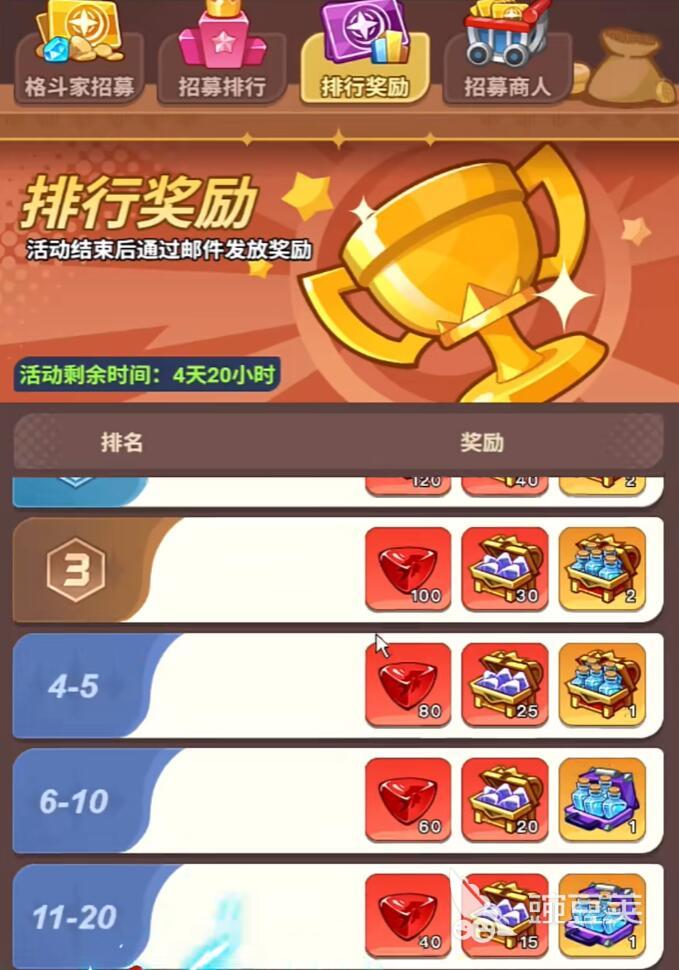 随着游戏不断深入之后,玩家如果批量的想要拿血晶的话,就需要紧盯限时活动。其中格斗之星活动是玩家值得冲的福利的地方要说他能够让玩家持续获得血晶,通常结束之后可以借助邮件发放奖励,而玩家此时需要通过竞技场挑战,完成日常任务等等方式来逐步的积累。当玩家在全场有排名之后,就能够瓜分奖励。