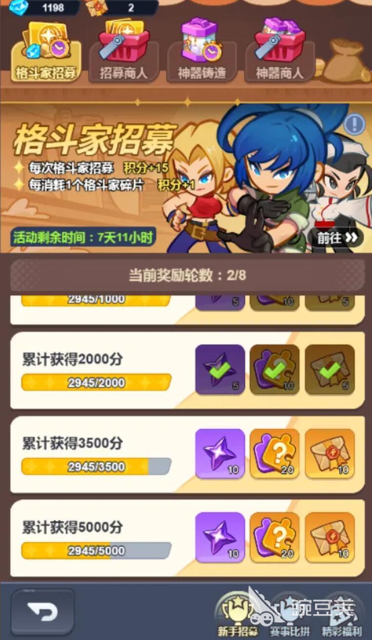 所谓的顺序图主打的就是有三个活动,这三个活动作为一个大循环,它的顺序其实是固定的,也就是很多玩家所说的周常活动,要说第1周是招募活动,这个活动是能够帮助玩家快速地获取新的格斗家,毕竟玩家在体验最强斗王游戏的时候,可以借助招募就能够获得高星的格斗家。此时会涉及到角色碎片以及珍贵的招募券,对于平民玩家来说,是非常有利的。其次神器活动是第2周的。这个主打的是能够让玩家积攒大量的神器培养材料,到了第3周是奥义周,此时可以让玩家获得奥义密转卷和觉醒石。