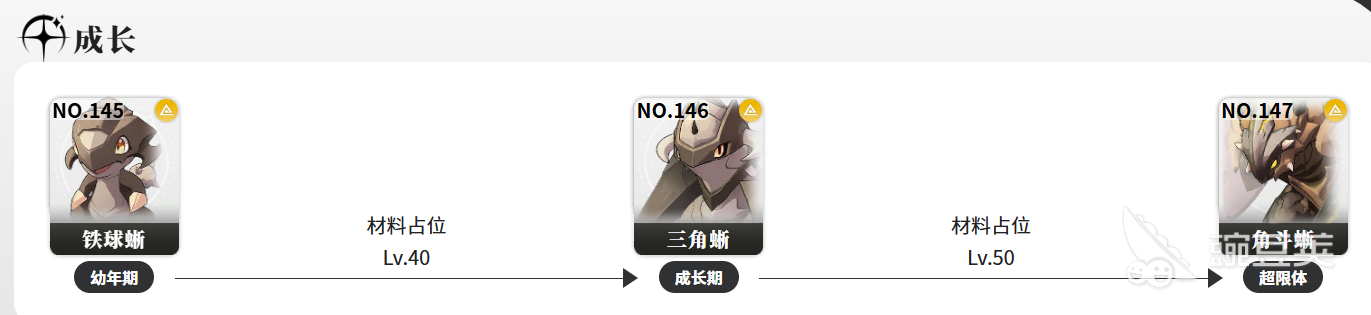铁球蜥属于地属性,种族是异生类里的鳞形族,标签是猛袭。光看标签就知道,这家伙走的是主动出击的路子,不是那种躲在后面慢慢磨的类型。先说说它的基本情况。身高60厘米,体型小,幼年期阶段。体型小不代表好欺负,地属性本来就偏向厚实抗打,加上猛袭标签,铁球蜥在战斗里的定位更偏向前排冲锋,靠近敌人打输出。