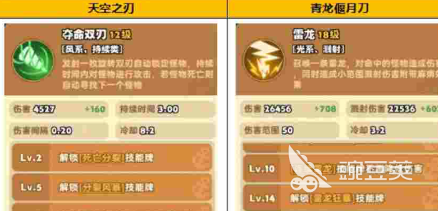 神器方面的搭配也是风系的核心,建议选择天空之刃,青龙偃月刀,还有神风之翼。在升星优先级时,就应该先选择天空之刃,然后选择青龙偃月刀,资源不要分散。天空之刃就是核心的输出,单体伤害一定要满足,在击杀后分裂的小人就可以持续的收割。10级之后还能压制住目标,然后让他没有办法输出,在打boss的时候是比较好用的。青龙偃月刀补位,刚好就可以解决分析范围不足的问题,在激活雷电激荡之后,暴击触发的大范围激光就可以迅速的清理屏幕。