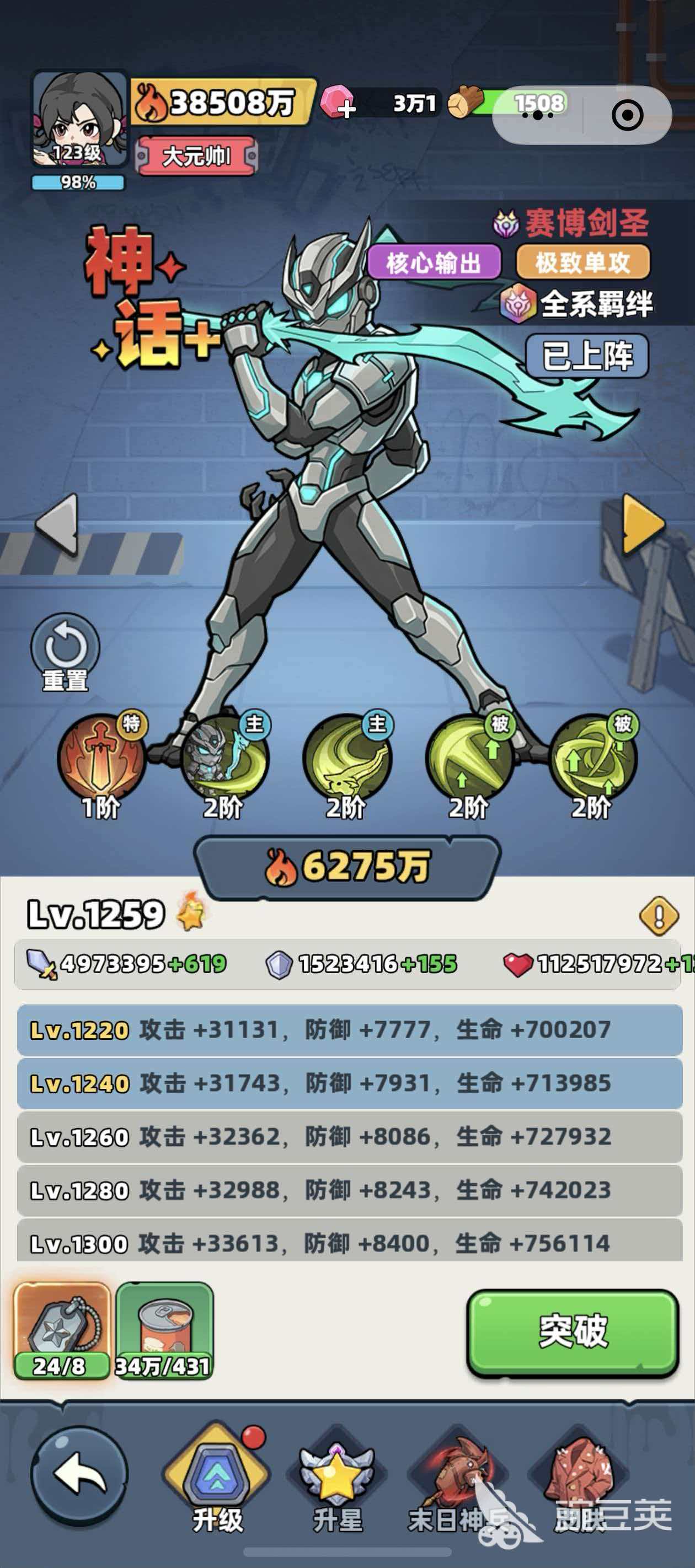 赛博剑圣在游戏中是一个神话+级别的幸存者,且该幸存者还没有在普通的幸存者招募中,玩家想要获取赛博剑圣的话,需要在指定的招募活动中通过招募幸存者来获得幸存者的碎片合成才行,赛博剑圣是一个核心输出角色,他不仅极致单攻的能力非常强,最主要的是他还是一个全息羁绊角色,也就是说不管哪个系的角色和赛博剑圣搭配都可以触发羁绊的特有效果。