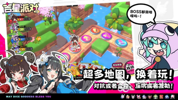 以个性的二次元风格,展开场景风格的塑造,《吉星派对》是一款适合多人联机的派对手游,因此也非常适合情侣玩家组队一起体验。游戏内会有各种随机事件触发,例如陷阱奖励或是战斗等,同时极具随机性的各种地图场景,也充满的各种反转和意外,满满的博弈较量元素,令大家可以尽情感受快节奏且欢快的较量乐趣。