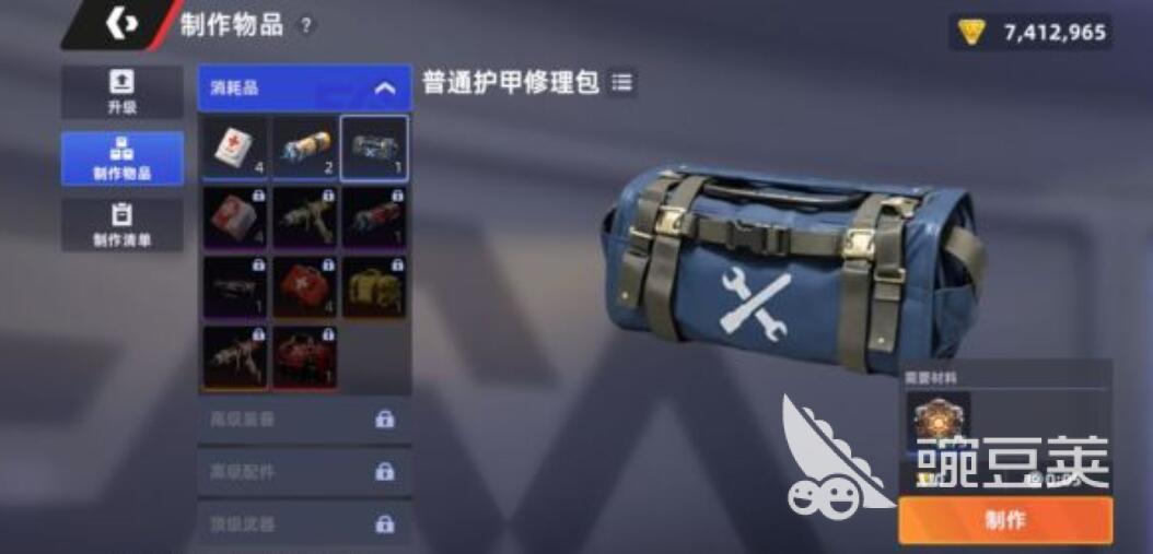 接下来玩家需要做的就是制作台的问题,其实这个问题在操作的时候,并不是特别的复杂,也不需要过于花哨的配方,只需要记住一个核心的用途,那就是玩家可以利用制作台来制作护甲修理包。护甲本来是用来保命的,在对局的时候频繁交火会让护甲的耐久性下降,而玩家如果此时没了护甲,很容易被敌人击中,这时候想要获得更多的物资是特别困难的。