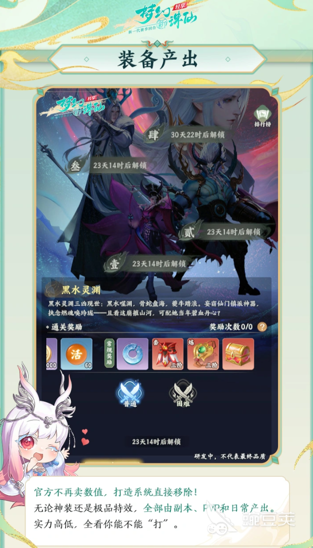 在实力养成上,《梦幻新诛仙》也进行了大刀阔斧的改革,主打反内卷和公平性。官方果断地取消了传统的装备打造系统,神装和极品特效全部来源于副本、PVP、日常产出,实力的强弱完全取决于玩家的操作和投入的程度,而不是金钱的堆积。战宠系统取消了等级门槛,用启灵、妖丹、化形三级进阶让萌宠也可以成为战神。更重要的是所有的仙友伙伴都可以培养到最高品质,张小凡、碧瑶等原著经典人物不再有废卡之分,只有卡牌搭配的无限可能。