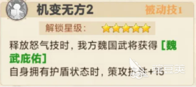 而郭嘉放在阵容里面的话,是他我方低血量的一个保证,因为郭嘉自身的各种能力可以通过buff触发,来让成员十的怒气技能快速释放出来,他的技能十胜天机可以保证我方目前攻击能力最高的一名队友,只要是在低血量的状态当中,那么此时被动增益就会得到非常大的百分比提升,而曹操的话,他目前在自身的核心技能效果上面有机变无方这个技能,通过这个能力,可以让他在释放自己怒气技能的时候,给魏国武将带来一层魏武庇佑的能力。