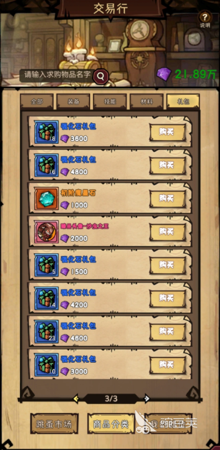 在钻石商店里面,大家如果氪金的话就可以看个人的需求购买,而公会商店里面只有大家加入公会之后才可以进行购买,所以前期建议大家找一个等级比较高、活跃度也比较高的公会,因为公会商店里面会有一个其他地方买不到的东西是藏宝图,藏宝图大家去用的话,有机会可以挖出金色的技能包,这个技能包其实目前是有部分玩家可以得到的,也比较看运气,如果大家需要这类资源,而自己运气不太好的话,也可以通过交易系统来获取,只要升级到20级的话,就可以参与这里的交易了,不过需要大家充值一个月卡才能开通,建议大家可以开一下,因为有很多东西大家没有办法拿到的话,可以通过交易系统来直接购买,后期卖了换钻石,或者是去转卖或者自己用都是可以的。