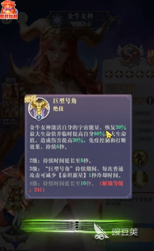 最后那自然就是选择金牛女神,这就是一个全能型的卡牌,强度是很不错的,有输出有控制,有坦度。金牛女神的强势体现在多个方面,有高额的回血效果,还有实用的控制能力,以及打断技能。敌方在准备开大招时,一个打断就可以让对方的蓄力全部白费,加上眩晕的效果,那控场的能力还是比较出色的。另外他的坦度堪称天花板,带上专属的神器,就可以获得90%的免伤效果,即便是这个效果在5秒内迅速的衰减,那也可以抵抗大部分的伤害。