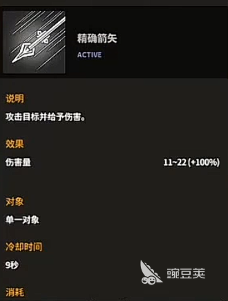 弓箭手在游戏中的一些搭配法术输出的效果大家也是要了解清楚的,在这里他的精确箭矢,这个技能虽然是作为一个初始可以带来基础伤害量的技能,但是因为是作为一个单体输出伤害,所以不建议大家一开始就加点,另外建议大家去提前加点的还是魔法弓这个技能,这个技能相对来说的话,给大家带来的基础输出会比精确箭矢更高一些,而且她可以为大家的普攻带来一个增加伤害的能力,特别是在远距离的伤害当中带来的效果比较好,冷却时间还只有1秒,所以前期大家是比较需要这样一个增幅效果的。