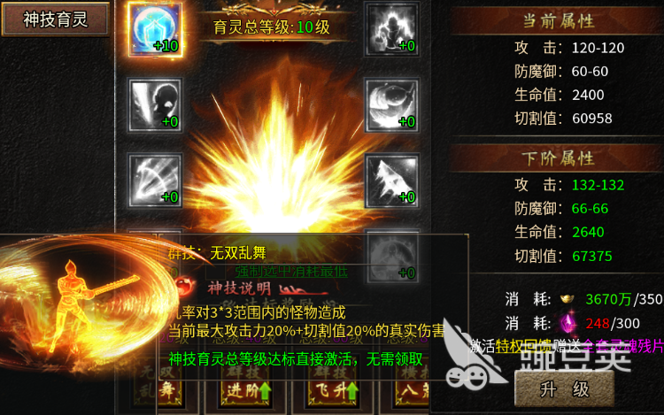 一般投入了龙魂草之后,角色在属性效果上面会获取最高5000点的切割数值,当然如果大家有额外投入千年灵芝之类的资源,在这里对于角色来说转生后带来的防御点也会有最高1000点的提升效果,包括其中九转还魂丹也是可以喂给角色的,此时对于玩家需要的生命数值来说提升的最高点数有1万点,所以我方如果需要足够的生存提升效果,在这里转生的时候还可以投入足够多的九转还魂丹,那么其次,大家在战斗过程当中有转生的属性作为基础的情况下,后期还可以通过不同技能效果来升级角色可以带来的战斗能力,这里大家可以给角色装备的各个神技是有不同能力的,一般在给角色进行升级的时候是不会为技能随便带来其他的等级提升,而是要单独给不同的技能进行加点提升。