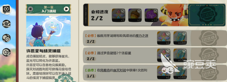 推主线的同时,记得打开魔法手册看一看。手册里有很多成就任务,难度不高,但奖励挺丰富的。里面有一类,是捕捉精灵的成就,数量比较多,建议在地图里,遇到没捕捉过的精灵,第一时间就抓下来。捕捉新精灵,不只是为了完成成就,每抓一只新的都会给一笔经验,而且还能丰富自己的阵容。有一只叫罗隐的精灵,数值比较高,后期打副本很好用,遇到了优先捕捉。