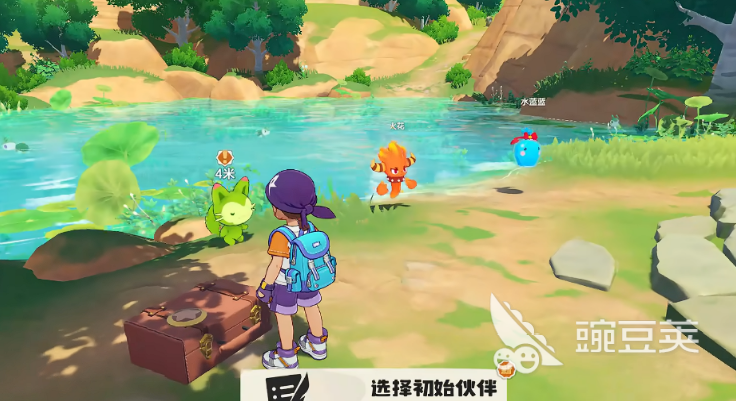 游戏一开始要选初始精灵,三个里面火花是最值得选的。原因很简单,前期地图里草属性的敌人特别多,火属性刚好克制草属性,打起来省力很多。新手期本来就容易卡关,选一个克制多数敌人的精灵,开荒压力会小不少。选完精灵之后,就是新手引导,跟着走就行,会教捕捉精灵的操作,也会介绍一些基本的世界背景。