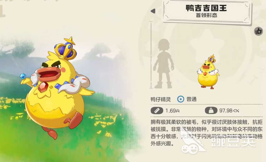 鸭吉吉最基础的形态有三种。第一种是它刚出来的样子,身体比较小,头有点扁,看着活力满满的。第二种是蓬松形态,整个身体变得圆滚滚的,走起路来有点笨,但偏偏就是这副软乎乎的模样,让不少玩家觉得特别可爱。第三种是超进化之后的首领形态,气场一下子就不一样了,整个鸭吉吉看起来像个国王,威风了很多。
