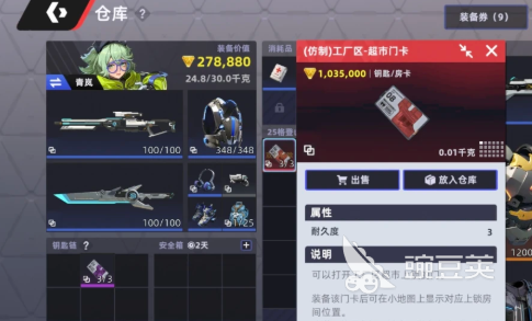 钥匙就属于一种消耗品,会有固定的耐久度,而且每使用一次就会降低一点耐久度。耐久度在耗尽之后,钥匙就会消失,高价值的钥匙,一定要选择妥善的保管。把钥匙装备好之后,小地图上就会直接有对应上锁房间的位置。进入地图之后,建议优先选择这些高价值的点位,可以迅速的拿到物资,还可以避开其他的玩家,将对方打一个措手不及。不同地图的钥匙房资源是各有各的侧重,例如工厂区的钥匙房,就可以刷新武器配件,山区的钥匙房就可以获得高级的材料,大家可以根据个人的需求去选择。