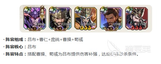 强攻追击流对于新手来说就是一个主要的选择,核心就是吕布,然后搭配曹仁、庞统、曹操、荀彧。曹仁放在前排去有效抵抗伤害,曹操的辅助就可以有效提升吕布的伤害加成,让吕布会拥有更好的爆发输出。不管是清理野怪或者是打团战,都可以轻松的达成群体秒杀,可谓是速战速决,一点都不会拖沓。