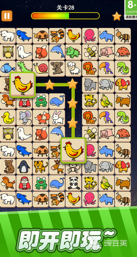 作为经典消除玩法代表作,本作以萌系小动物图鉴为核心元素,考验玩家对路径规划与视觉识别的综合能力。关卡中相同图案之间常被障碍物隔断,需通过合理消除中间图块,逐步打通连接通路。每关设有步数或时间限制,辅以炸弹、提示、重排等实用道具,兼顾策略性与休闲感,适合碎片化时间体验。