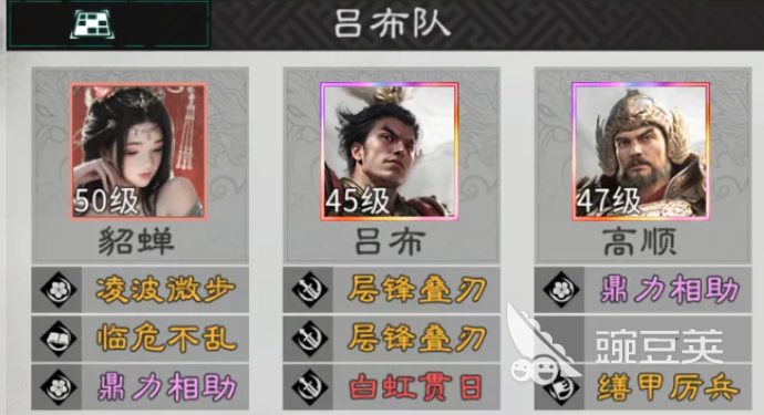 今天为大家推荐的阵容里面,第一个大家可以先用吕布追击队,其中用这个阵容玩儿起来的话,各个角色身上的能力都是非常明显的,其中吕布、貂蝉、高顺组合在一起就可以带来基础的阵容组成,吕布追击队当中目前带来的追击次数非常高,而且高升跟貂蝉在这里都可以通过吕布的追击格子带来更多次的追击输出,一般情况下,他一场战斗当中最多可以追击到1个回合里面6次的概率,这样的情况下,高顺他作为统帅的话,这部分的属性要高于其他的敌军时才可以发出更多次的追击。