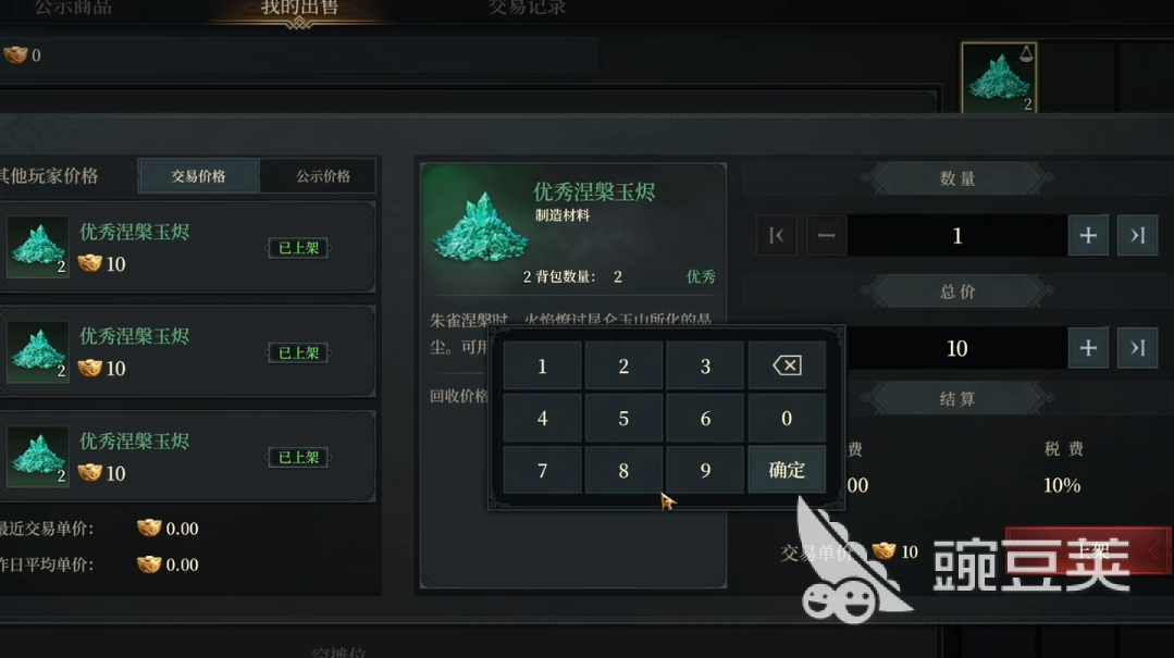 除了出售给其他成员之外,玩家还可以选择回收,每个材料都会有对应的回收价格,可以根据自己的心理预期判断是要在游戏里回收还是出售,通过出售的方式一般都能获得更高收益,但售卖起来也会相对比较耗时,假如玩家对于游戏里的资金没有那么紧缺,可以尝试自行定价售卖,定价没有限制,玩家可以根据回收价格和市场价和综合制定,游戏里还会展示同物品其他成员的售卖价格,但为了维护交易市场的公平,相对比较低端的物品会设置一个最高价,玩家的定价无法超出最高价。