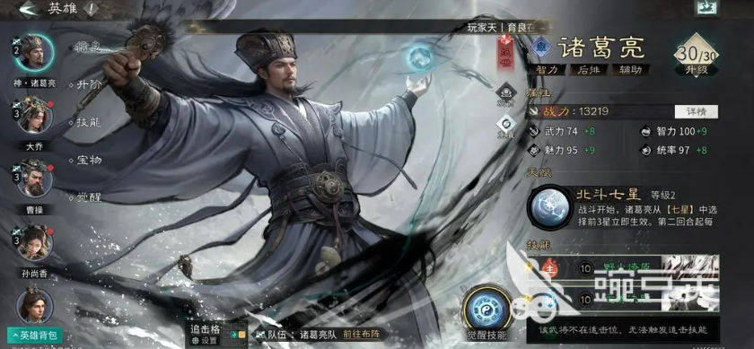 最后的控制武将大家还可以玩儿的就是诸葛亮,诸葛亮在这里目前玩儿在控制队当中也是非常重要的一类角色,基本是少不了他的各种技能卡牌,主动技能当中带的也是机谋巧变之类技能卡,在对敌人造成基础数值的时候,带来一阵牵制的能力,这类封面效果当中的控制,是让敌人无法利用追击格子带来更多次的追击伤害,而且在其中可以对敌人造成基础32%左右的攻击,如果受到智力影响的话,还有20%的概率可以施加更多前置能力的控制,第二个追击状态当中可以带反制,对敌人进行追击的时候造成的伤害的,当中还可以增添混乱的能力,当然这部分能力也是受到魅力数值影响,有50%的概率可以增加一些混乱,目标在混乱状态当中是无法对我方进行攻击的,说不定会直接攻击对方自己的队友,而最后可以带一个被动技能可以用兵不厌诈,只要是前期受到他这里被动的伤害就可以带来40%的伤害提升效果,所以控制能力越多的时候,他这个被动攻击出来的百分比提升就越多。