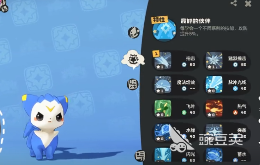 里面有两个核心的功能,技能学习,就可以让精灵学习到各种特殊的技能。技能调整,还可以针对精灵已经掌握的技能去搭配。精灵一共可以装备四项技能,在合理搭配之后,就可以发挥战斗力。这里就给大家新手分享一套实用的技能搭配思路,首先就一定要保留一个零消耗的技能。野外对战的时候变数很多,一旦星星消耗,那么零消耗技能就可以直接避免无技能可用的尴尬局面。另外可以搭配两个1~2星的消耗技能,这类技能消耗比较低,实用性较强。